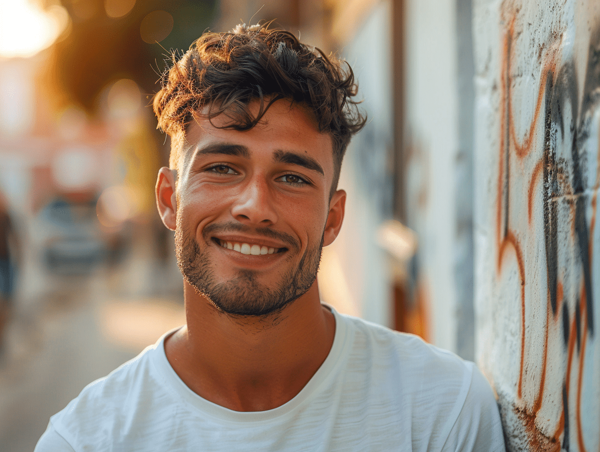 Le dégradé à blanc est une variante particulièrement populaire, où les cheveux sont rasés très courts sur les côtés et à l’arrière, créant un contraste net avec le dessus plus long. Cette coupe, aussi connue sous le nom de buzz cut, est prisée pour son entretien facile et son esthétique moderne.